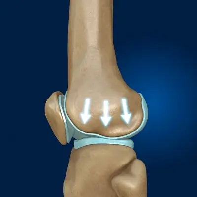 Toto zařízení přirozeně vyrovnává čéšku, rovnoměrně rozkládá tlak na celý kolenní kloub.