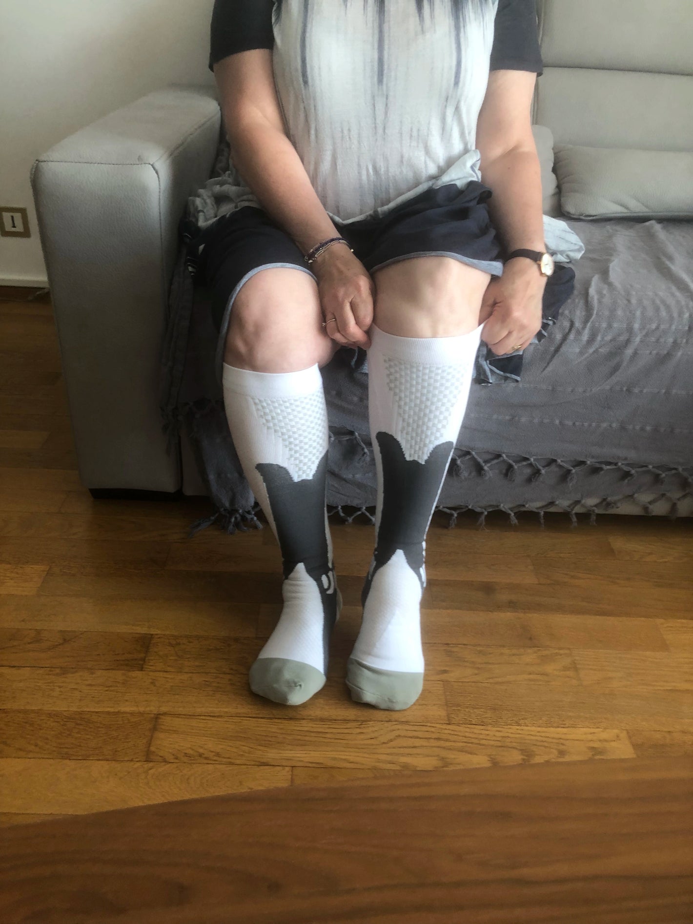 Vyzkoušela klasické stahovací ponožky—nepohodlné, ošklivé, těžko se oblékaly.